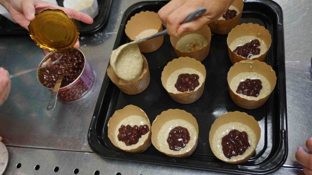 前回は蒸しパンを作りましたが、参加人数や当日の作業効率を考慮し、今回はマフィン風の焼き菓子に改良しました。