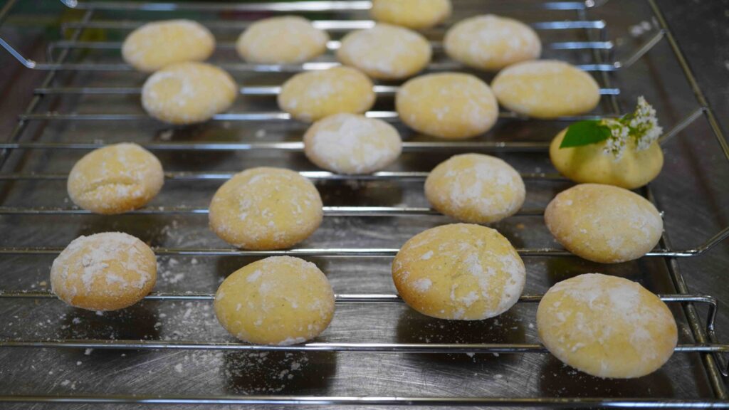 ▼焼き上がったボーロは 口どけがよく、カモミールの優しい風味が広がる仕上がりに。お茶受けにもぴったりです(^^♪